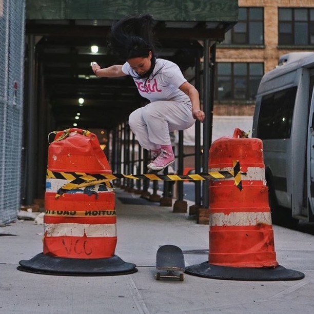 On top of all the commercial skating, there are also some females who skate street and just do it for personal enjoyment. One of our favorites is Emily, aka @lilnicegirl.  Some of you may know her from the Dime Glory Challenge, where she gets tossed out of a sumo style, last man standing type of contest.